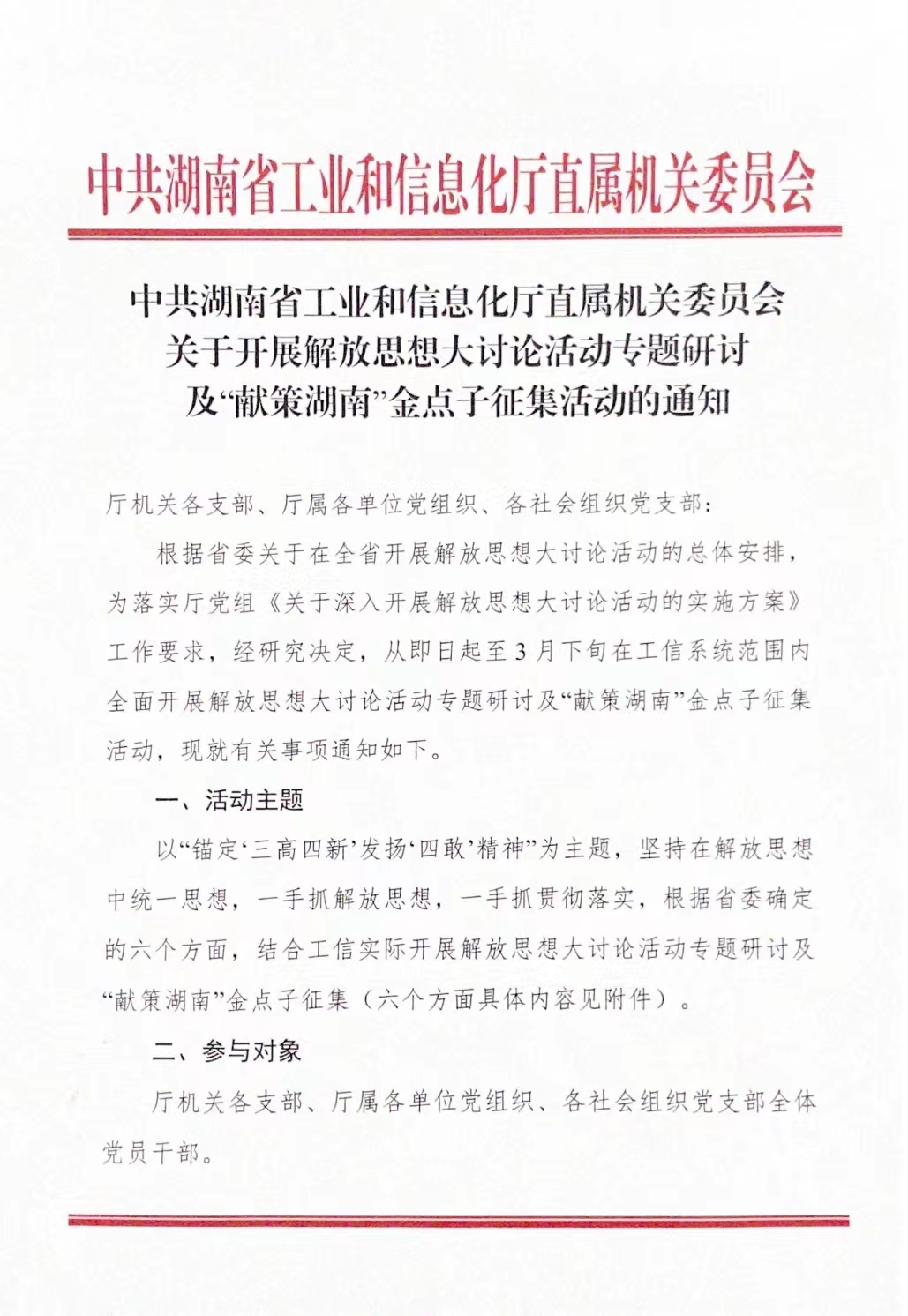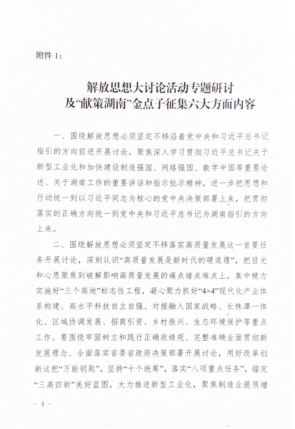 附件:开展解放思想大讨论专题研讨及“献策湖南”金点子征集活动的通知