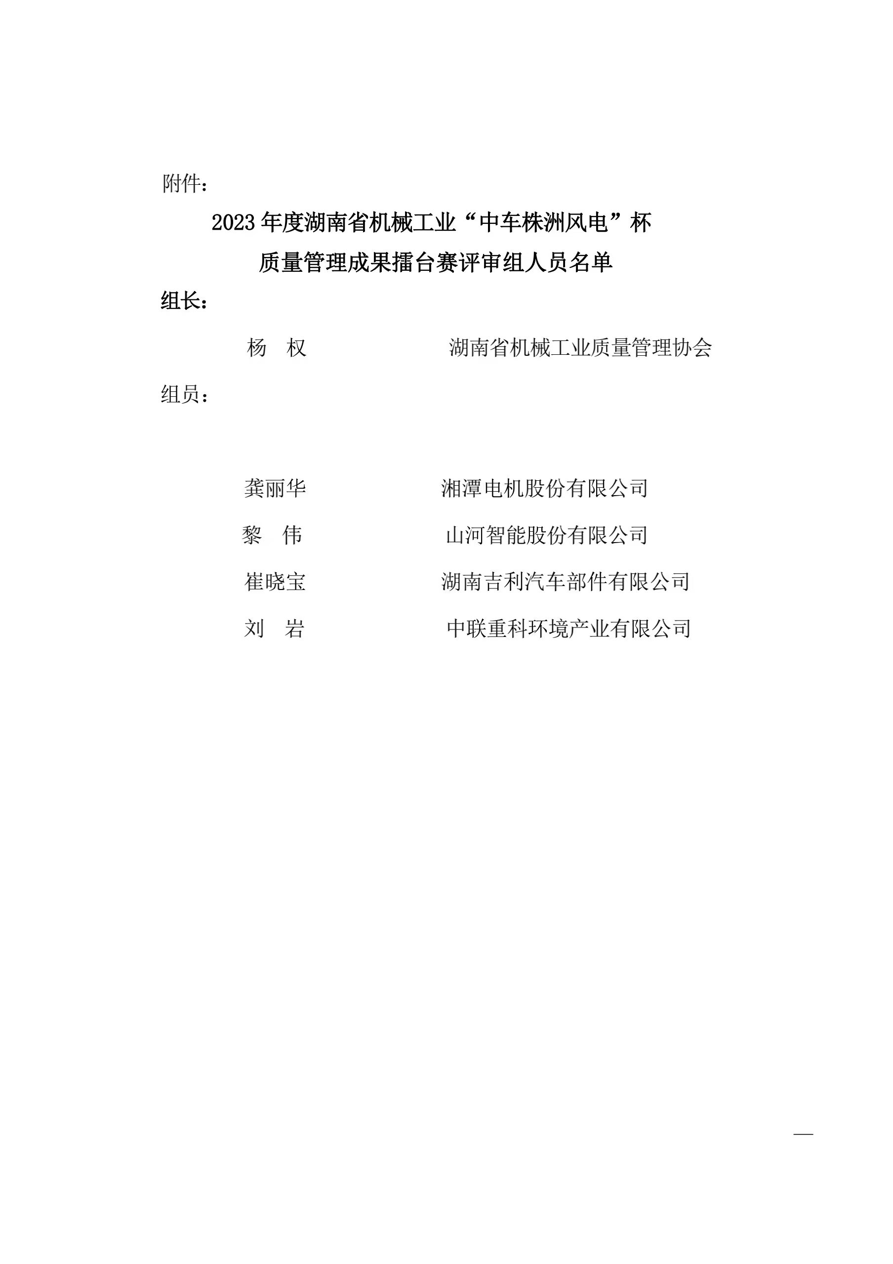 原文下载:关于召开2023年度湖南省机械工业“中车株洲风电”杯 质量管理成果擂台赛暨质量表彰大会的通知.pdf