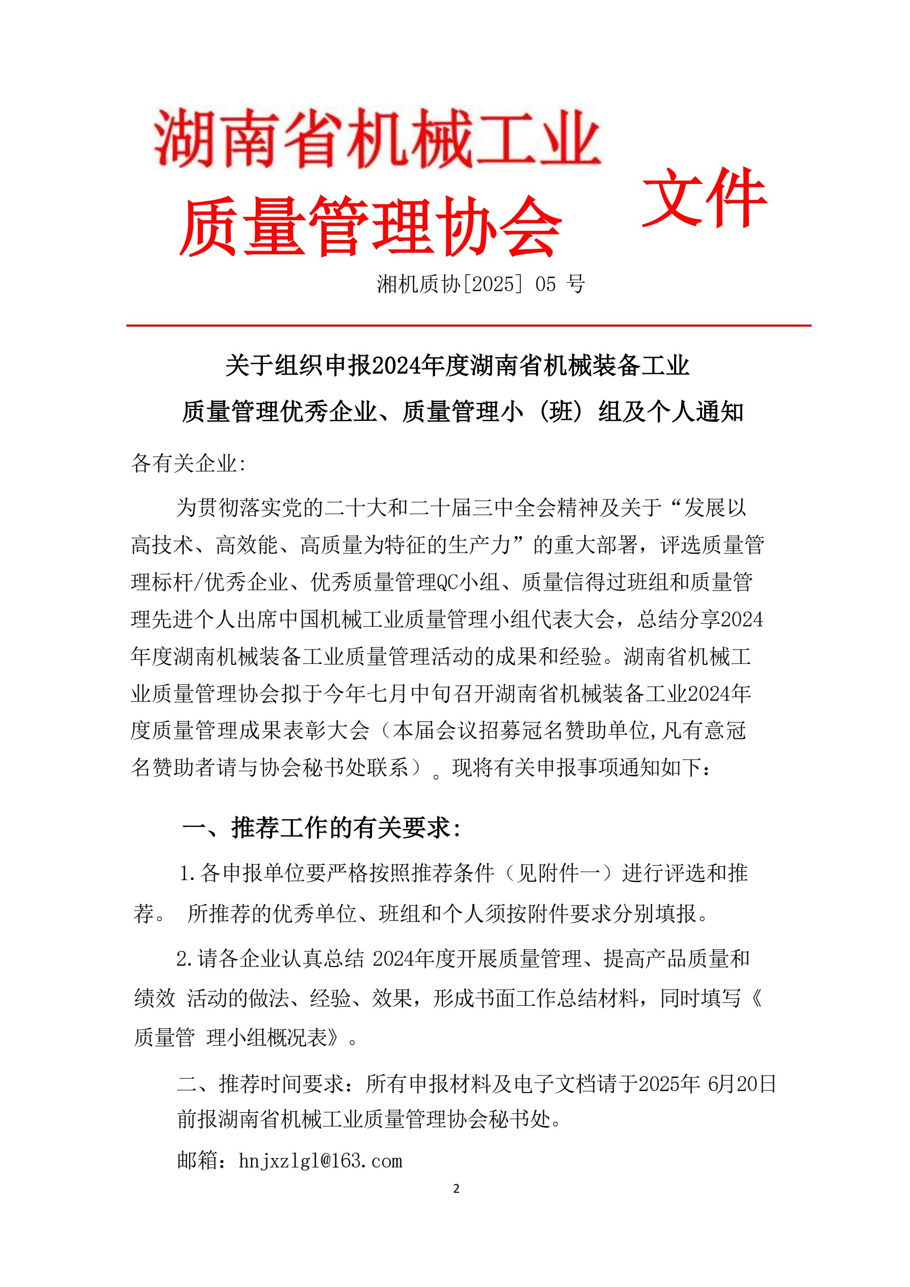 关于开展2025年湖南省机械工业“质量月”活动的通知