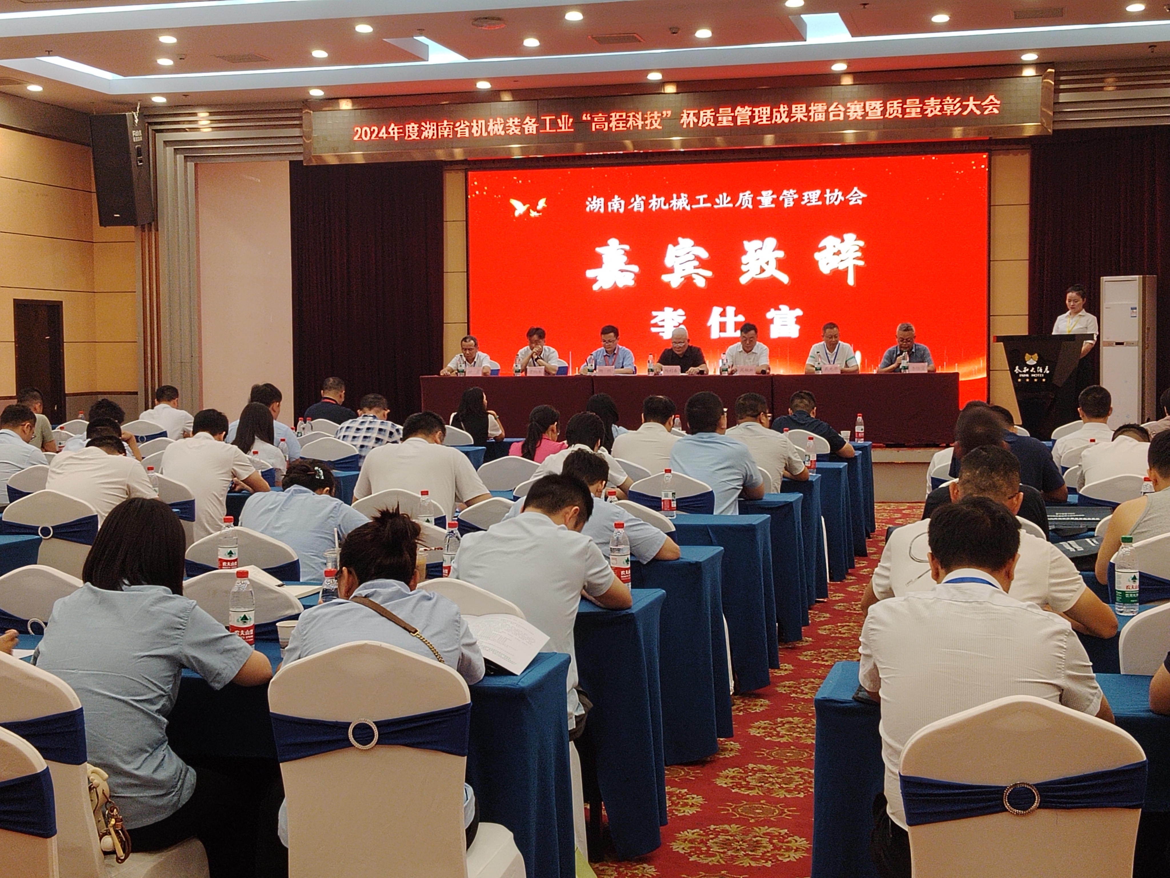·颁奖仪式:大会隆重地对2024年度湖南省机械装备工业的各个奖项进行了表彰。首先,颁发了2024年度湖南省机械装备工业“质量奖”,以表彰在质量管理和提升方面表现卓越的企业。接着,大会对获得2024年度湖南省机械装备工业“质量标杆企业”称号的企业进行了表彰,这些企业在行业内树立了质量管理的典范。此外,2024年度湖南省机械装备工业“质量效益优秀企业”也得到了认可,这些企业在追求高质量的同时,也取得了显著的经济效益。大会还表彰了2024年度湖南省机械装备工业“质量管理优秀推进单位”,这些单位在推动质量管理体系建设方面为行业做出了突出贡献。个人奖项方面,2024年度湖南省机械装备工业“杰出质量人”和“优秀质量工作者”也受到了表彰,这些个人在质量管理和改进方面展现了卓越的领导力和专业能力。最后,对本届质量成果擂台赛决赛的优胜组进行了隆重表彰,他们在激烈的竞争中脱颖而出,展示了卓越的质量成果。整个颁奖仪式充满了对卓越质量追求的肯定和赞誉。